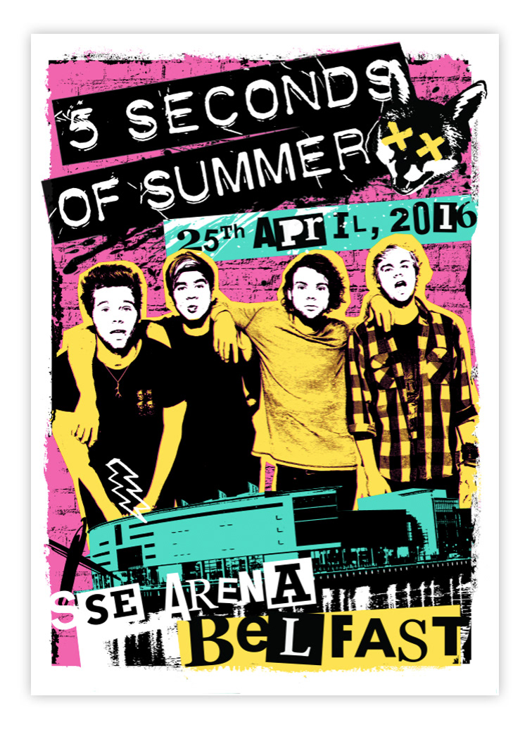 Recent gig posters commissioned by 5 Seconds of Summer for their 2016 UK / European Tour.