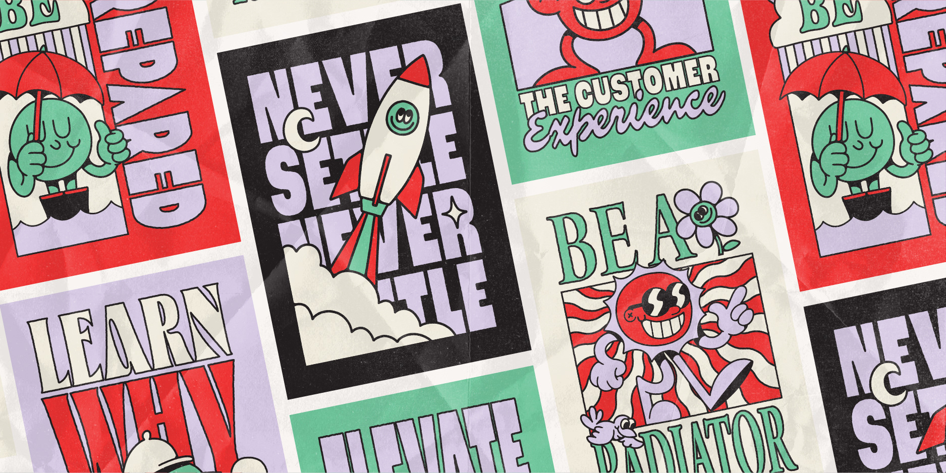We recently teamed up with good people at Journey Digital to create a 'back to the office' artwork package. The project consisted of 5 core value posters, a tee for staff and an in office mural design and application.