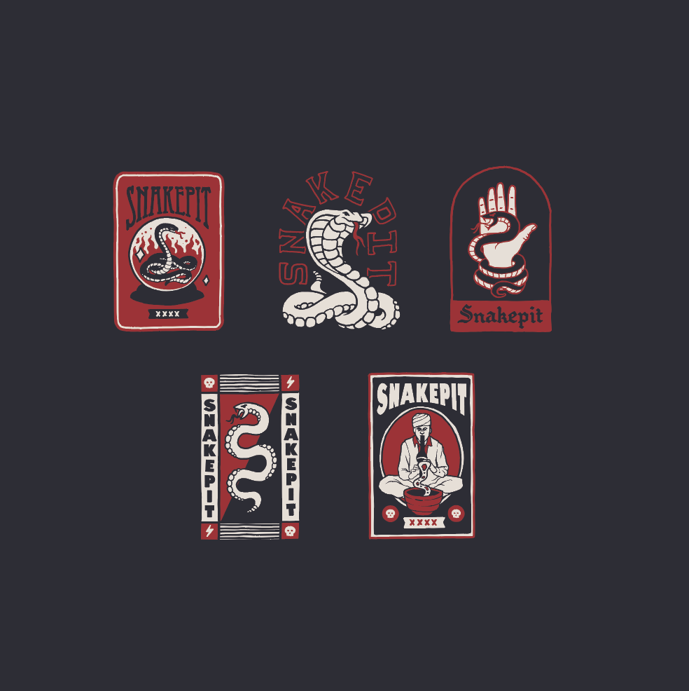 Graphic package created for Snakepit Skate Jam, an event run on the Central Coast of Australia. The theme was based around Tarot cards and vintage Matchbox designs.